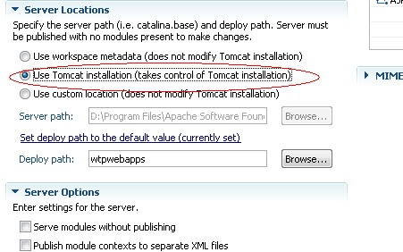 双击tomcat进入配置界面Service Locations(Specify the server path (i.e. catalina.base) and deploy path. Server must be published with no modules present to make changes.)选项变灰色无法更改配置。