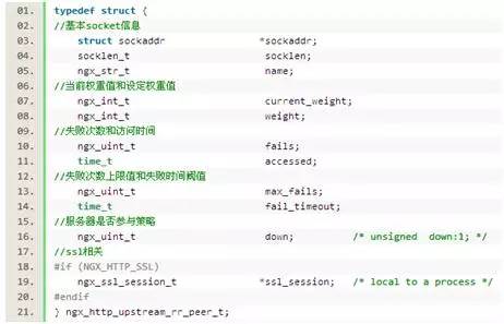 从变量命名中就可以大致猜出其作用。解释一下current_weight和weight的区别,前者为权重排序的值,随着处理请求会动态的变化,后者则是配置值,用来恢复初始状态。