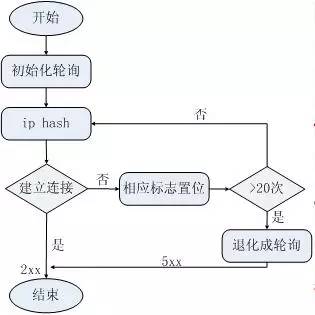 可以看到,hash值既与ip有关又与后端机器的数量有关。经测试,上述算法可以连续产生1045个互异的value,这是此算法硬限制。nginx使用了保护机制,当经过20次hash仍然找不到可用的机器时,算法退化成轮询。