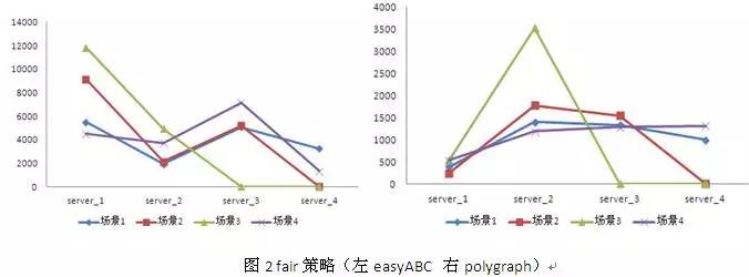 表2和图2是fair策略在两种测试工具下的负载情况。fair策略受环境影响非常大,在排除了测试工具的干扰之后,结果仍然有非常大的抖动。