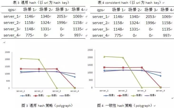 以下图表是各种hash策略,所不同的仅仅是hash key或者是具体的算法实现,因此一起做对比。实际测试中发现,通用hash和一致性hash均存在一个问题:当某台后端的机器挂掉时,原有落到这台机器上的流量会丢失,但是在ip hash中就不存在这样的问题。