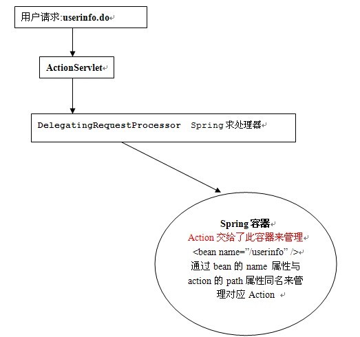 org.springframework.web.struts.DelegatingRequestProcessor处理流程如下: